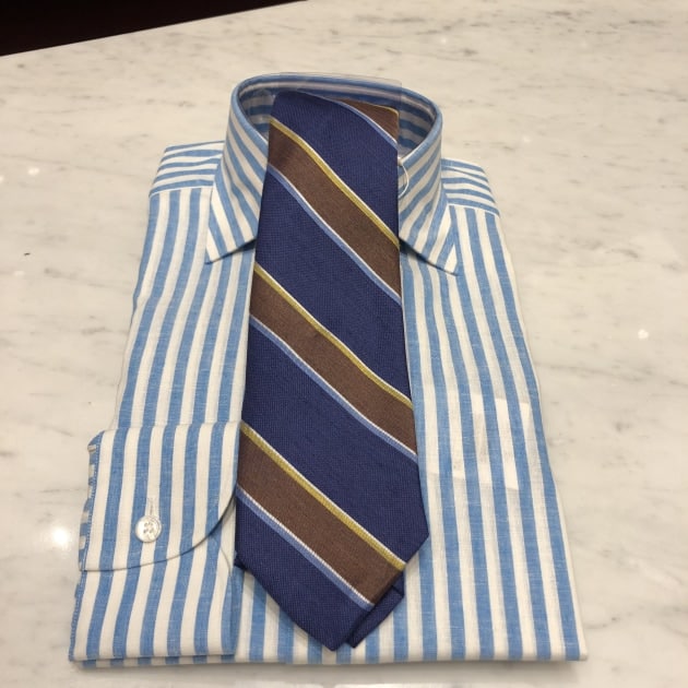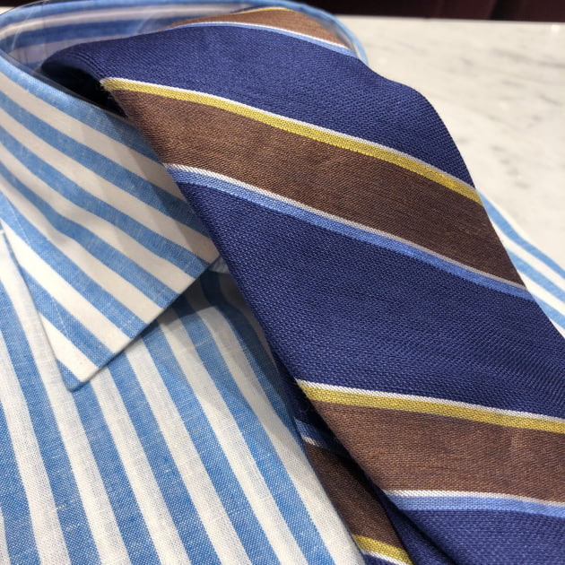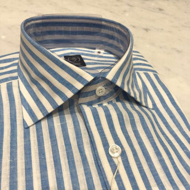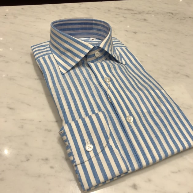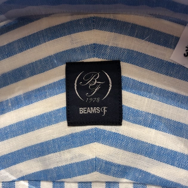 BEAMS F リネンコットンロンドンストライプワイドカラーシャツ