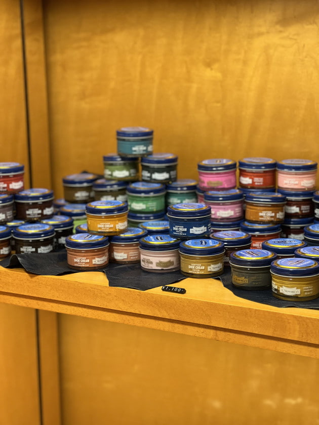約80色の乳化性カラークリームもご用意しており、お待ちのシューズに合うクリームをお求めいただけます。