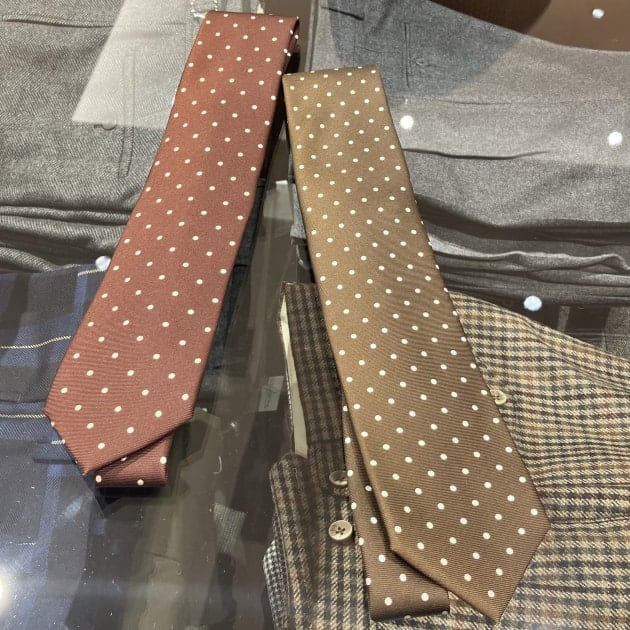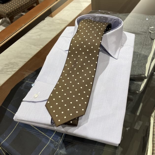 JOHN COM DOT takahashi.hideki 2023.12.04 こんにちは高橋です。いつもブログ見てくださりありがとうございます。非常に励みになります。さて、本日のご紹介は?何度となくのJOHN COMFORTハンドプリント ドット皆様、大好きなADAMLEY希少なアイテムブラウンドットが、急に欲しくなり色合い、水玉のスペースライトブラウン表記ですが、モカっぽいブラウン表記ですが、赤茶っぽい淡いブルーにどちらが合うかなんて考えながらスポットの間隔は赤茶がよいけど、色はモカが良いなあ?さぁ、あなたならどうします。