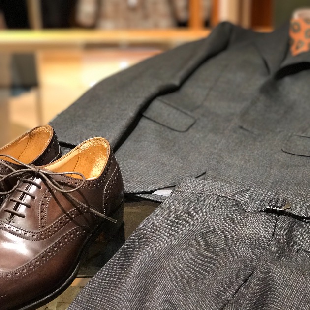 スリーピースのスーツスタイルのシューズには、クラシックなフルブローグが良いですね。