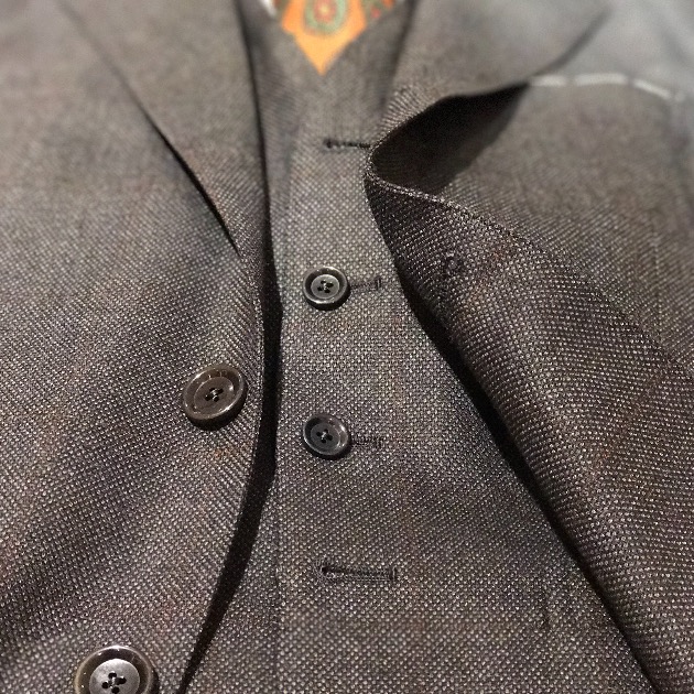 <COLOMBO>社の生地を用いたオリジナルスーツ。