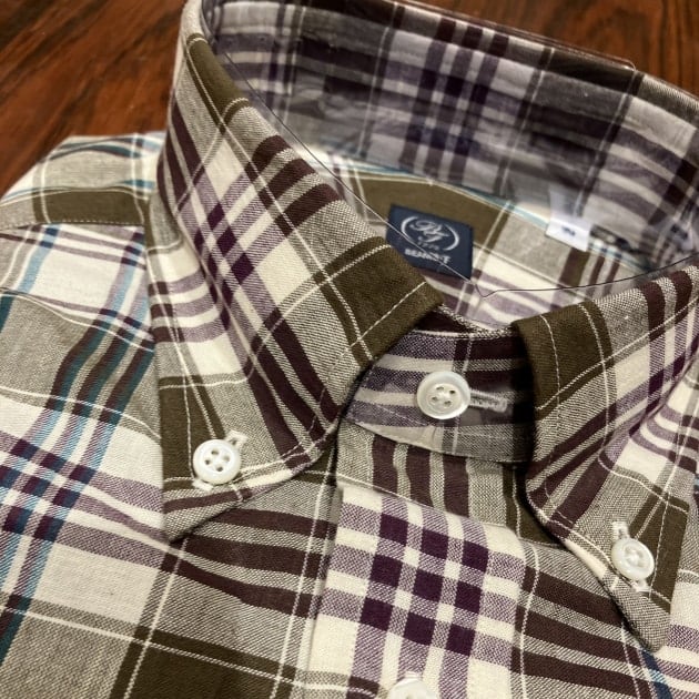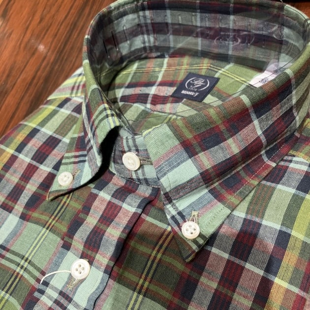 BEAMS F BROWN MADRAS ボタンダウンシャツ