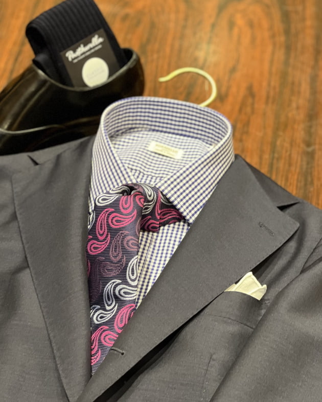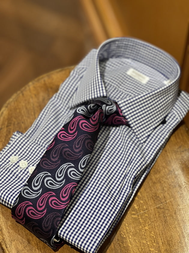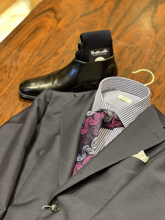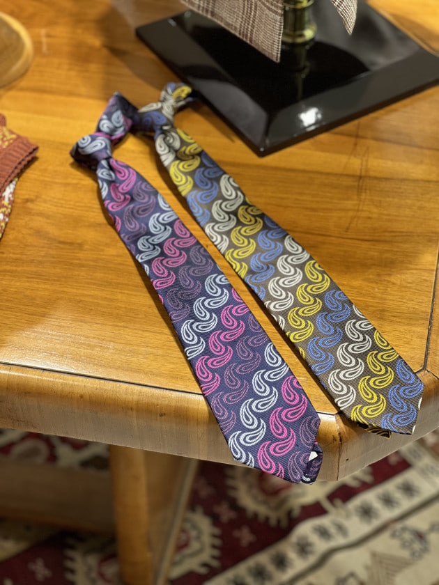 今回はインパクトのあるジャカードペイズリータイをメインにコーディネート。