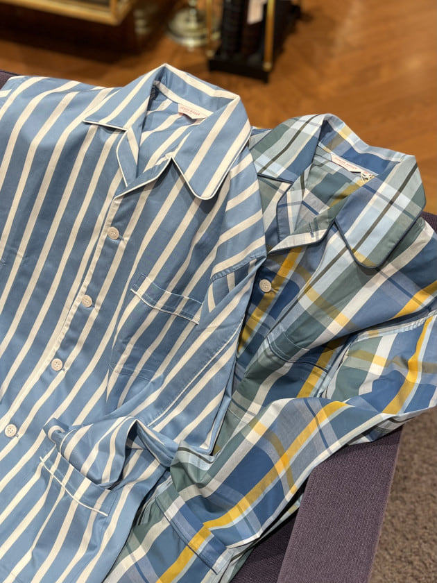 DEREK ROSE × BEAMS F / 別注 ストライプ スリーピング シャツ