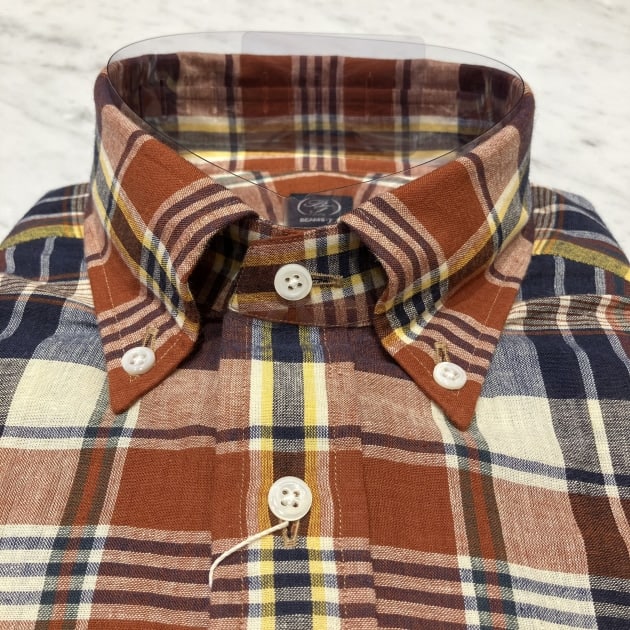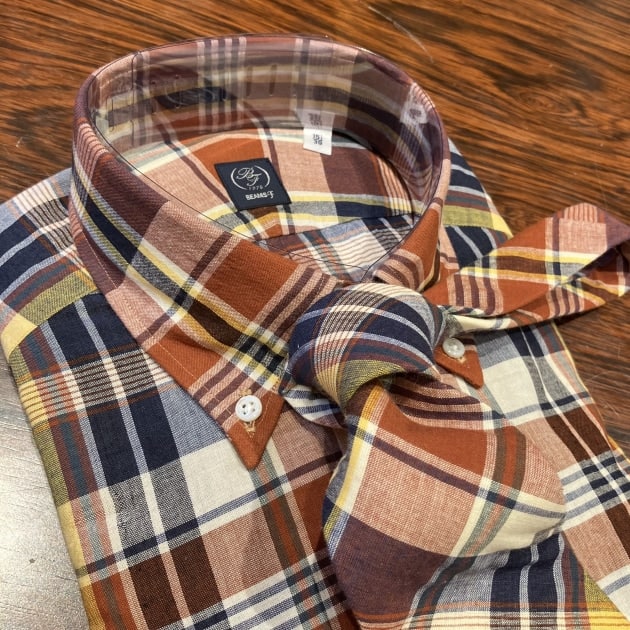 BEAMS F RED MADRAS CHECK ボタンダウンシャツ