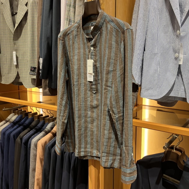 バンドカラーのプルオーバーシャツ