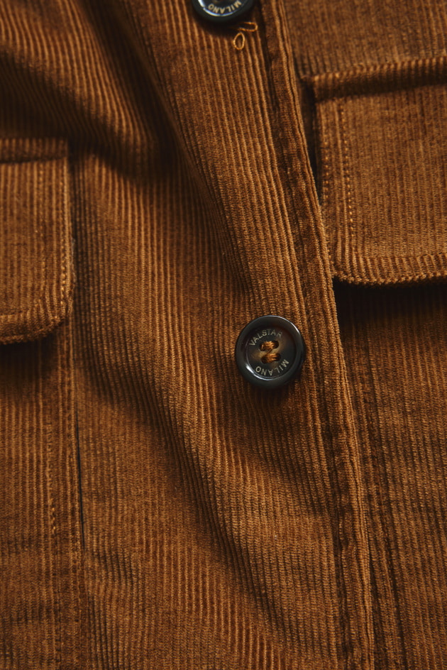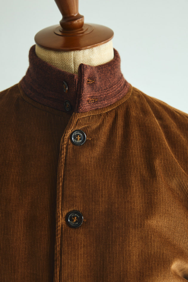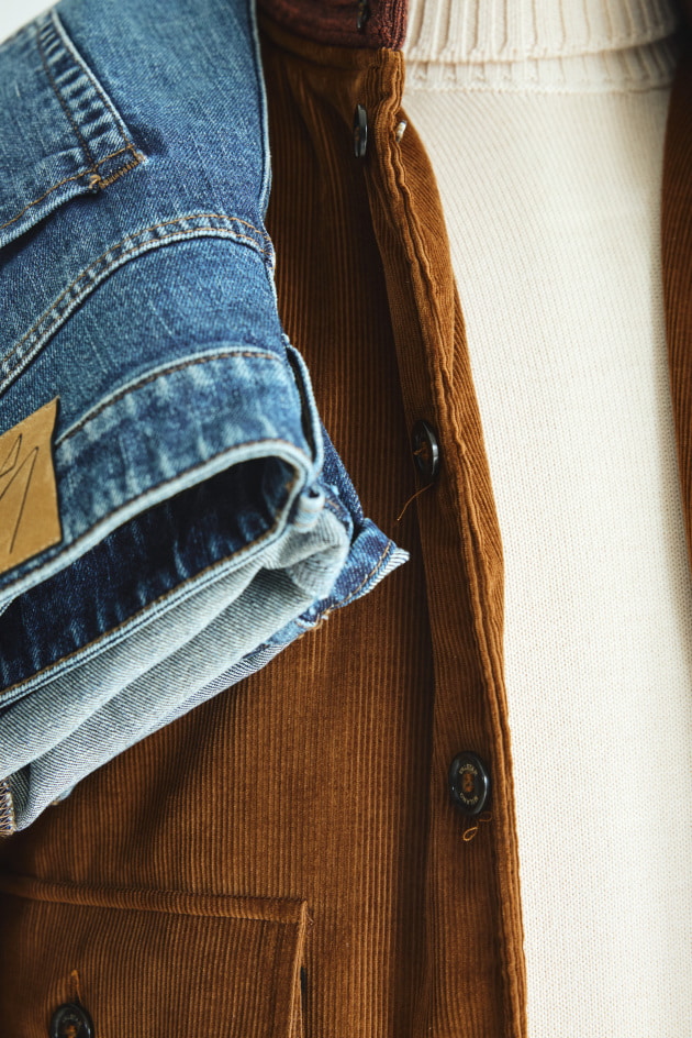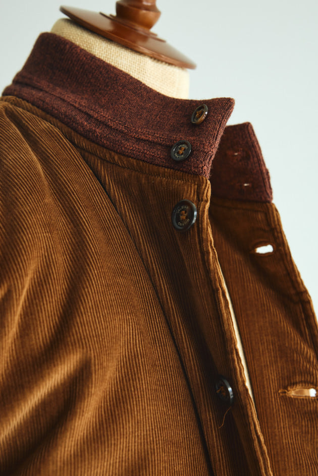 滑らかなコットンコーデュロイは、カントリー調の綺麗な金茶色の色出しがクラシックでかつ上品。着込むほどにそのクタッとした表情をさらに増していく、永く愛せる素材感です。