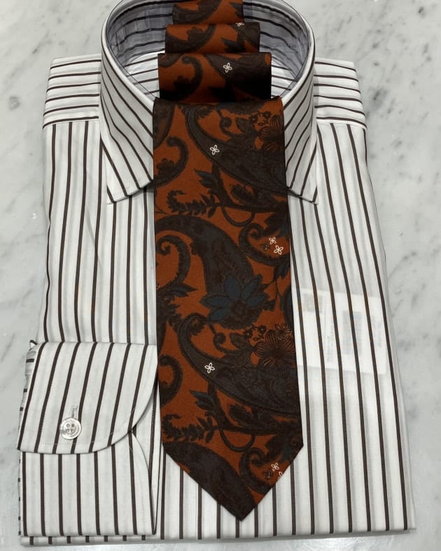 コットン ブラウン ロンドンストライプ ワイドカラーシャツ