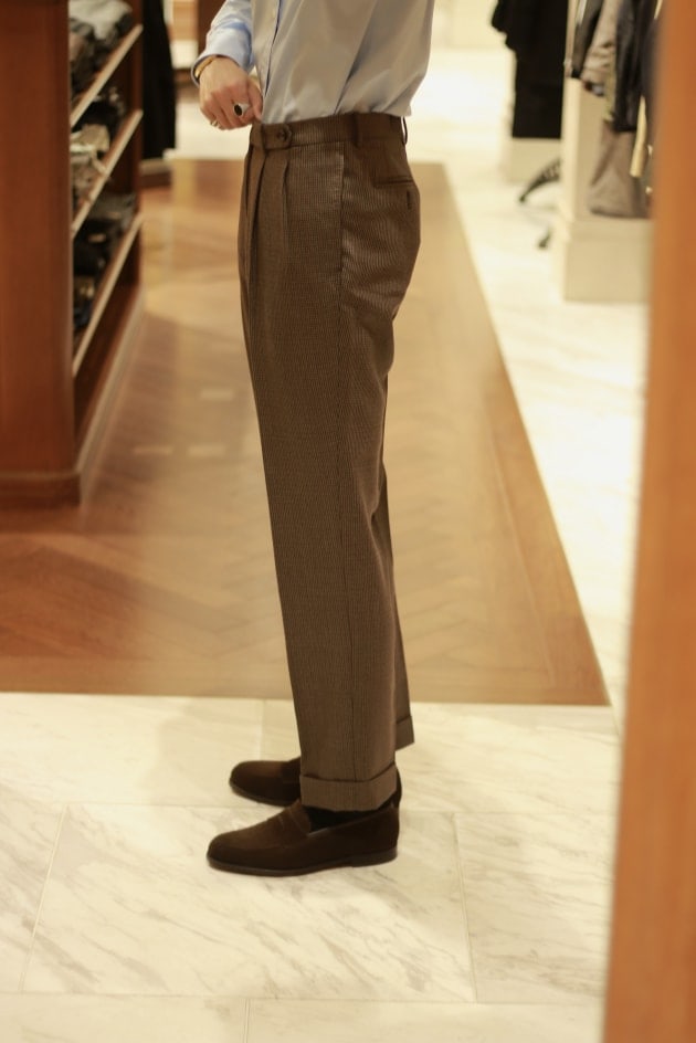 今年は取り扱いがありませんが〈KYNOCH〉社の記事を使ったビームスFハンドメイドラインのスーツです。
