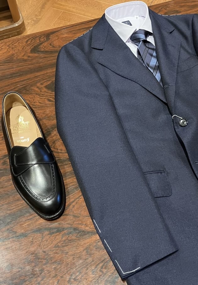 先輩スタッフが着ているのを見てかっこいいといつも思うネイビースーツですが私、一着も所有しておりません。