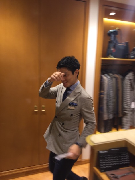 人生初の?パターンオーダー・スーツに挑戦した様子。