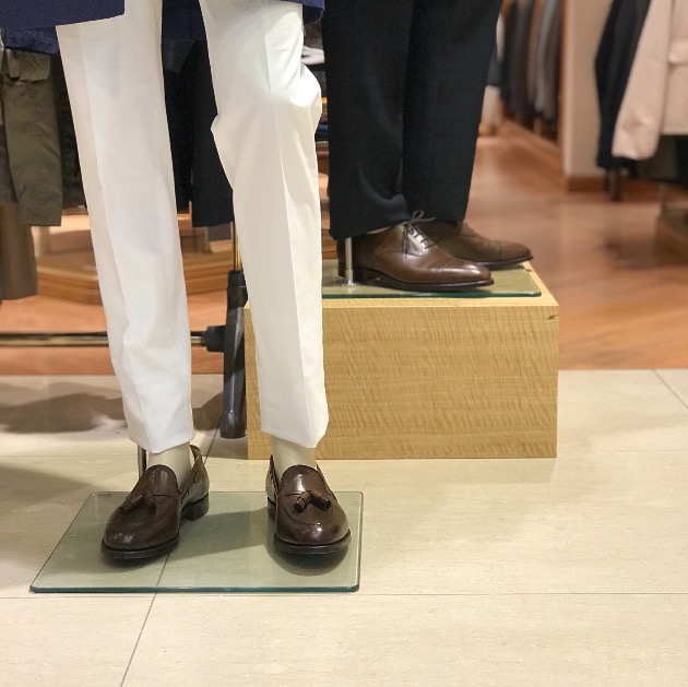 ジャケット、パンツスタイルにはもちろん、スーツスタイルにも合わせられるタッセルローファーの守備範囲の広さ。