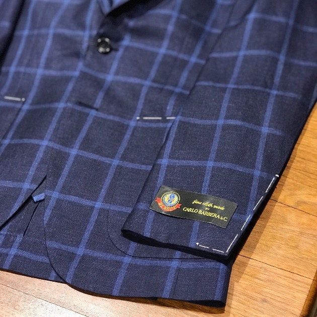 生地はイタリア<CARLO BARBERA>のウィンドウペーン。ウールリネンシルクの軽い質感が心地良さそうな一着。