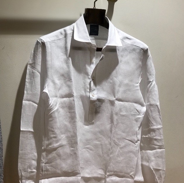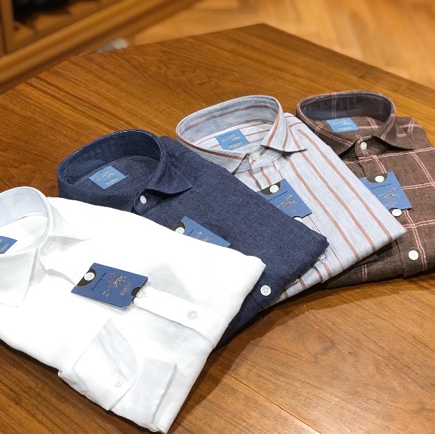本日から店頭に並んでおります。朝採れのフレッシュなリネンシャツがこちら。