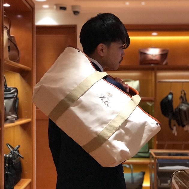 入荷したての<FEILSI>のキャンバスレザーのコンビバッグです。