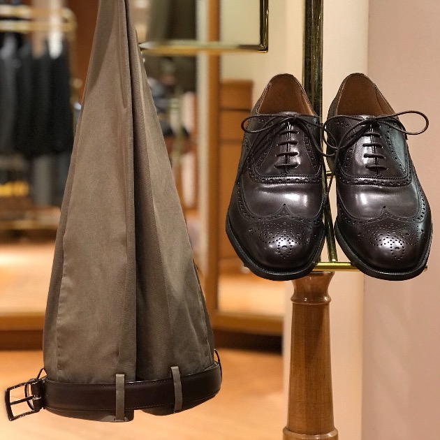 シューズはやはり<CHEANEY>のブラウンカーフのフルブローグ。カジュアルスーツなので、フルブローグのタッセルスリッポンもオススメです。