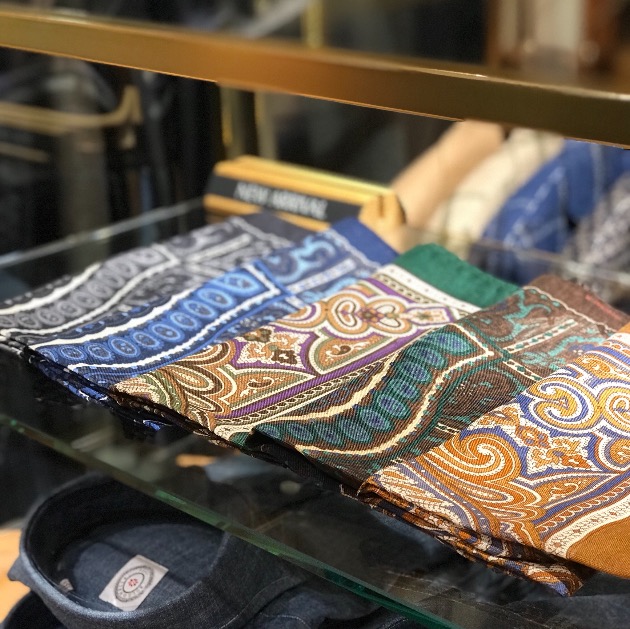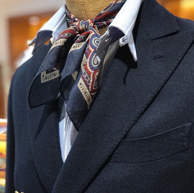 昨日も使用したこちら。<EREDI CHIARINI>のネッカチーフです。ウールとシルクでマットな質感でトーンも控えめ。大きさも丁度良いですね。写真を撮った後に一色旅立って行きました。ありがとうございます。