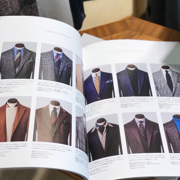 スーツ、ジャケットコーディネートで計24通りのVゾーンは圧巻です。秋冬シーズンのイメージが膨らみますね。参考書としてお使い下さいませ。
