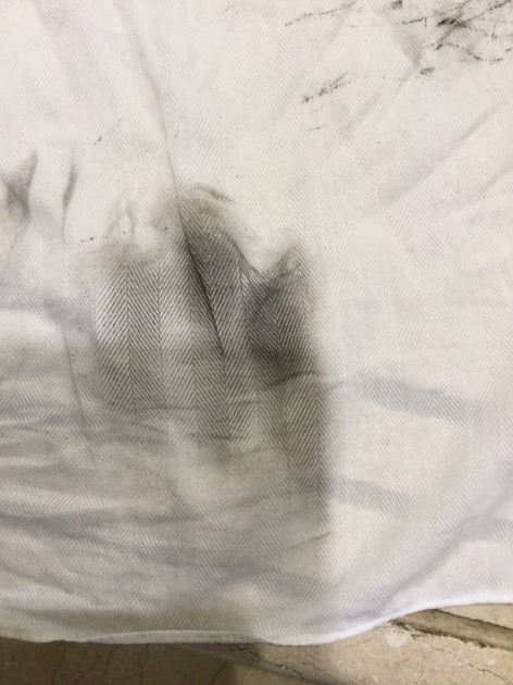 固く絞った布で拭き取っただけで、ご覧のように汚れが取れました。