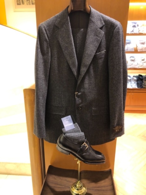 格子のスーツには、グレンプレイドのソックスの組み合わせ。