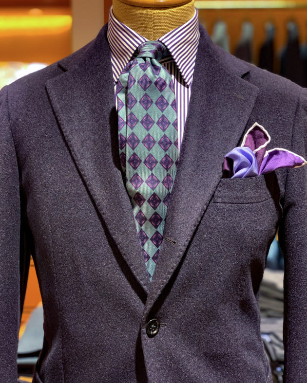 決して今時のコーディネートではないかもしれませんが、紳士には自分を表現するのに「質」をクローズアップする場面が必ずあるはず。