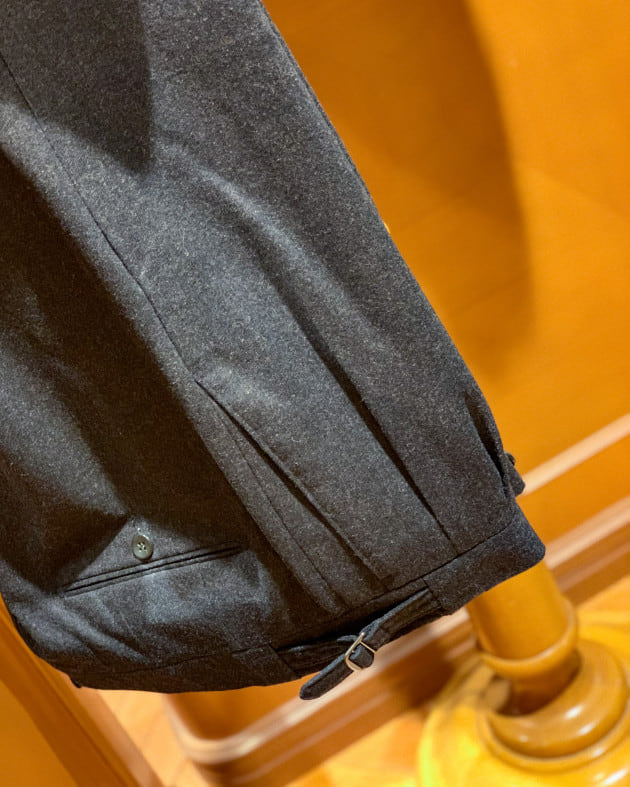 パンツも敢えてコントラストを抑え、チャコールグレーに。