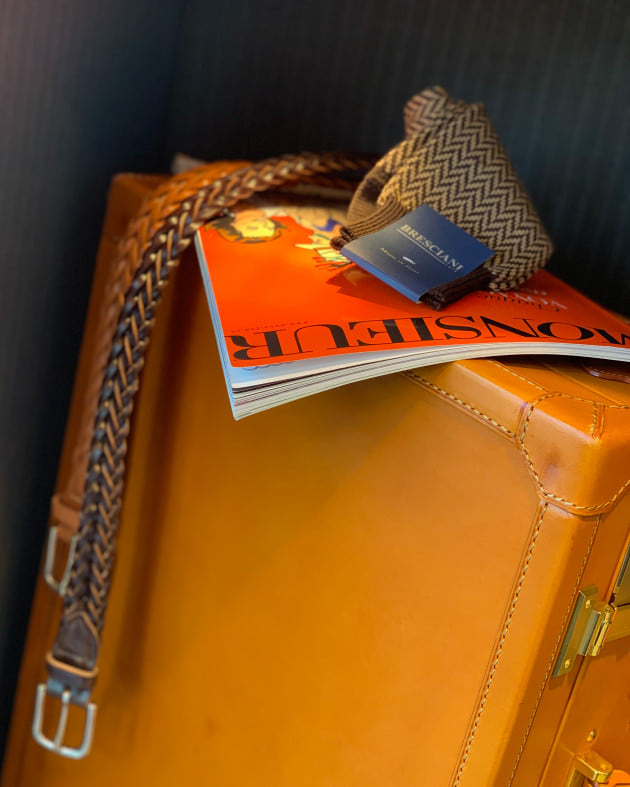 コーディネートを完成させるのに不可欠な、ベルトとソックス。