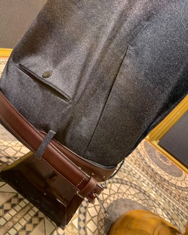 綿パンでも良いですが、ちょっと畏まってウールパンツ、いかがでしょう。