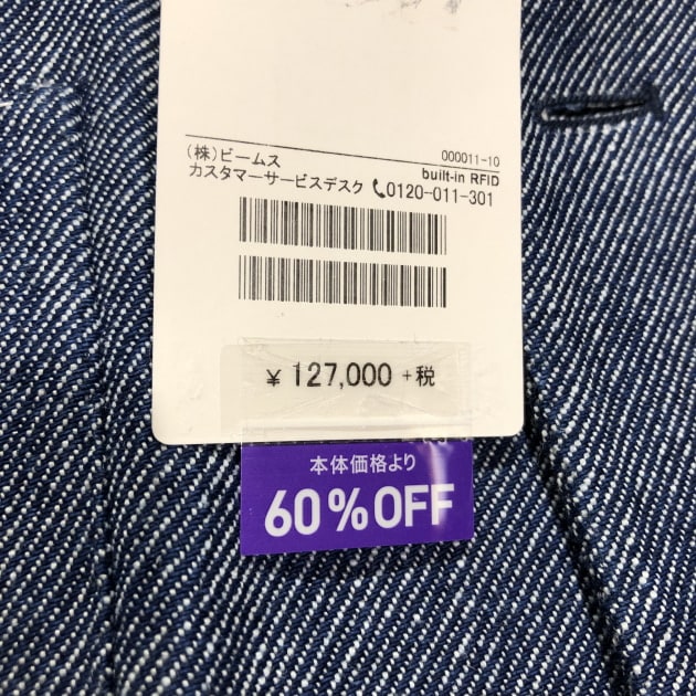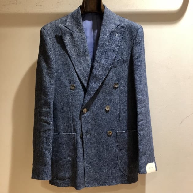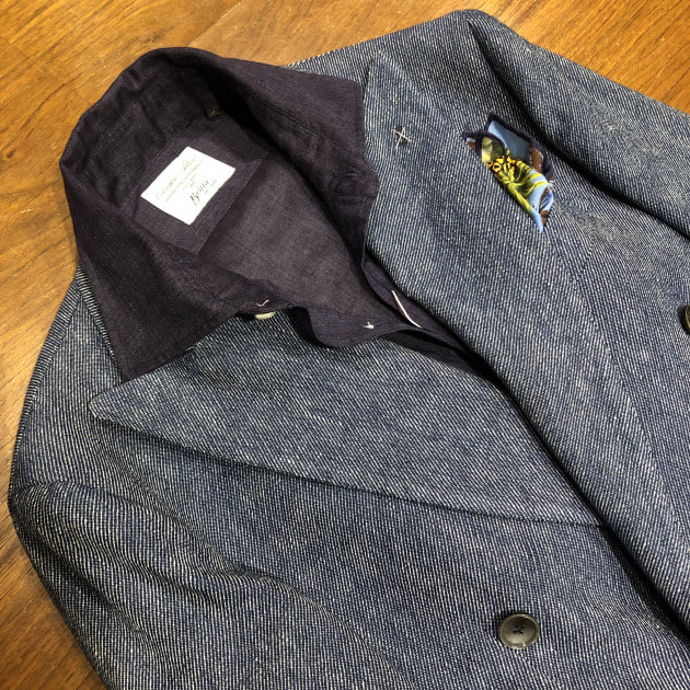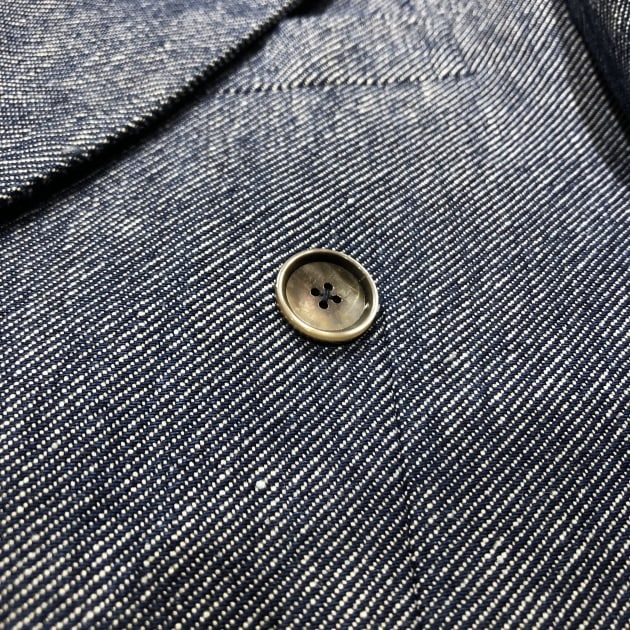 リネンコットンのデニム地に見えるようなダブルのジャケット。