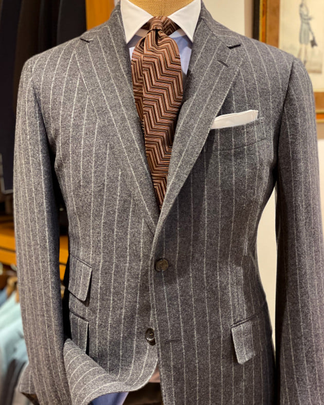 ゴリっと肉厚なフランネルに、存在感のあるチョークストライプ。