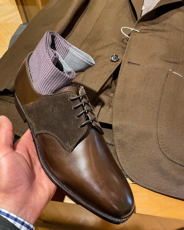 足元はサドルでカジュアルダウンいかがでしょう。