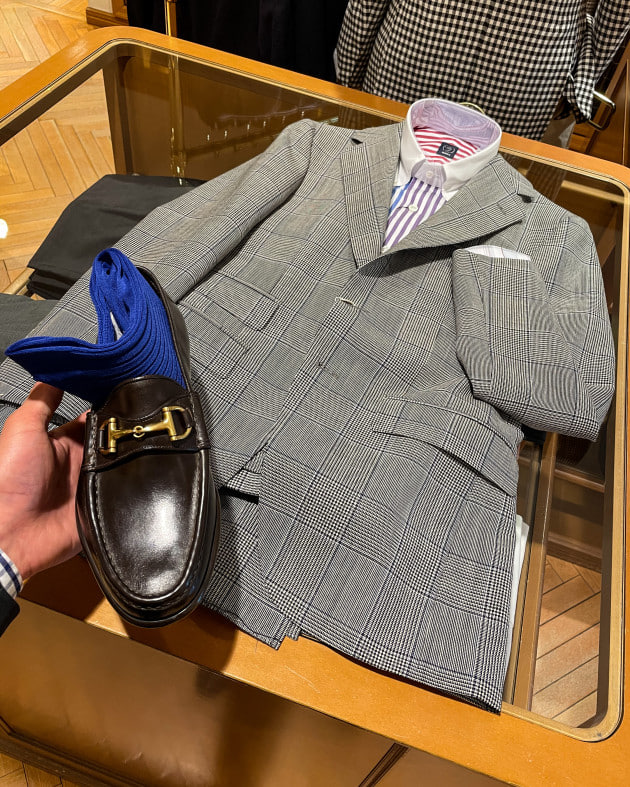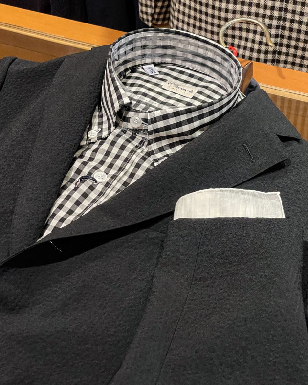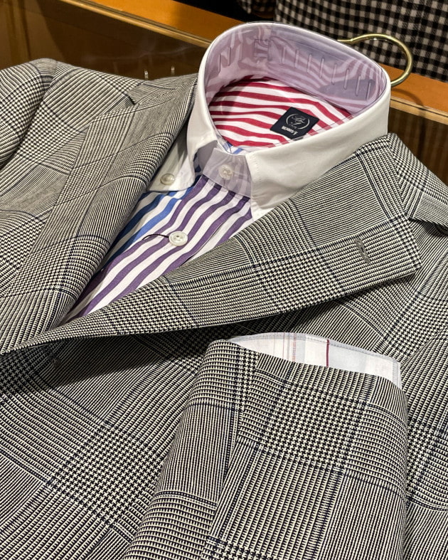 強撚糸のグレンチェックをアメリカンに。
