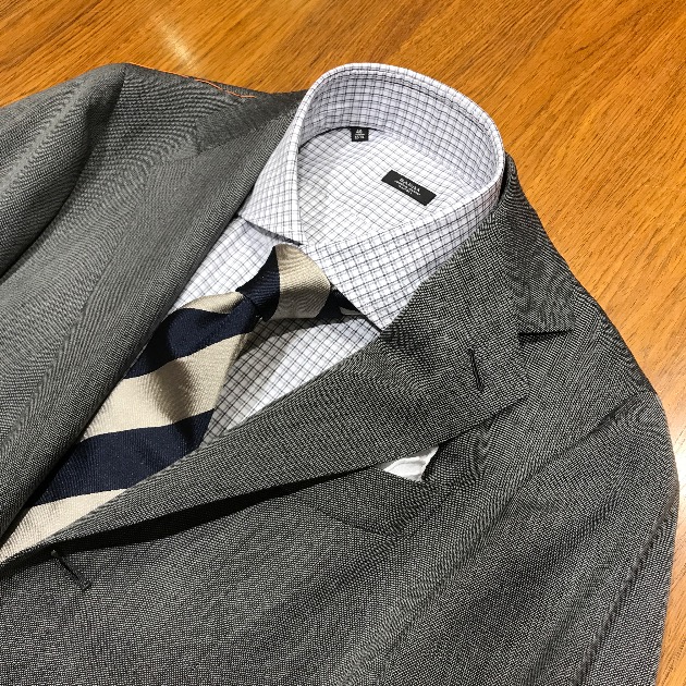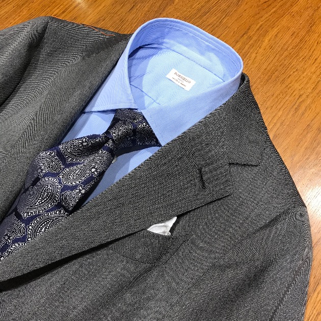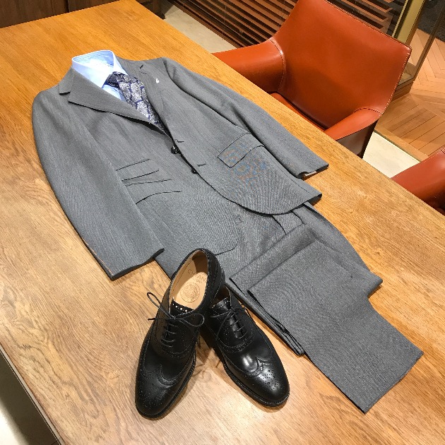 無地スーツですのでVゾーンの合わせも楽しくなりますよね。