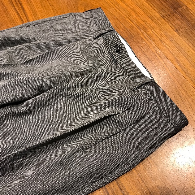 クラシック回帰の流れからプリーツパンツのモデルを採用しました。