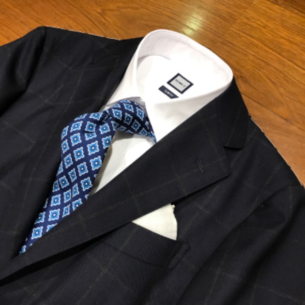 入社1年目に初めて買ったスーツがネイビーのウィンドウペーンでした。