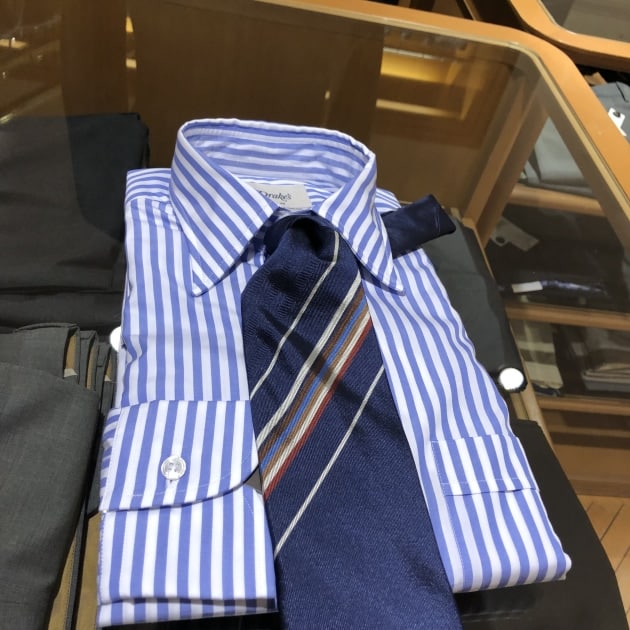 Drake's ロンドンストライプレギュラーカラーシャツ