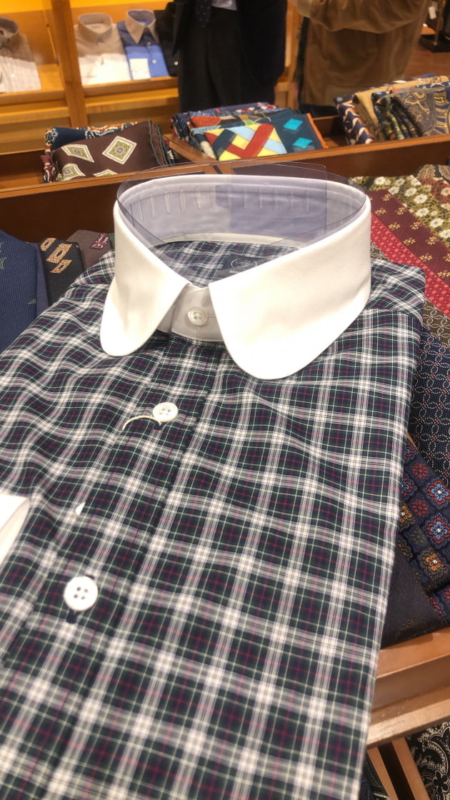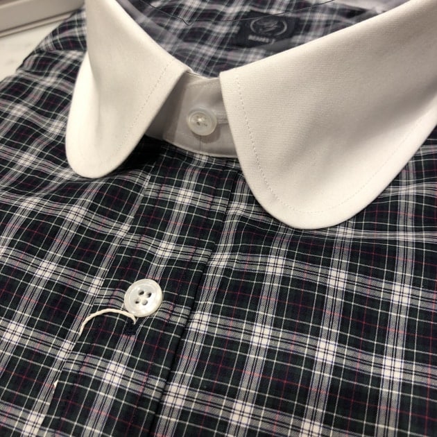 BEAMS F タータンチェック ラウンドクレリックシャツ