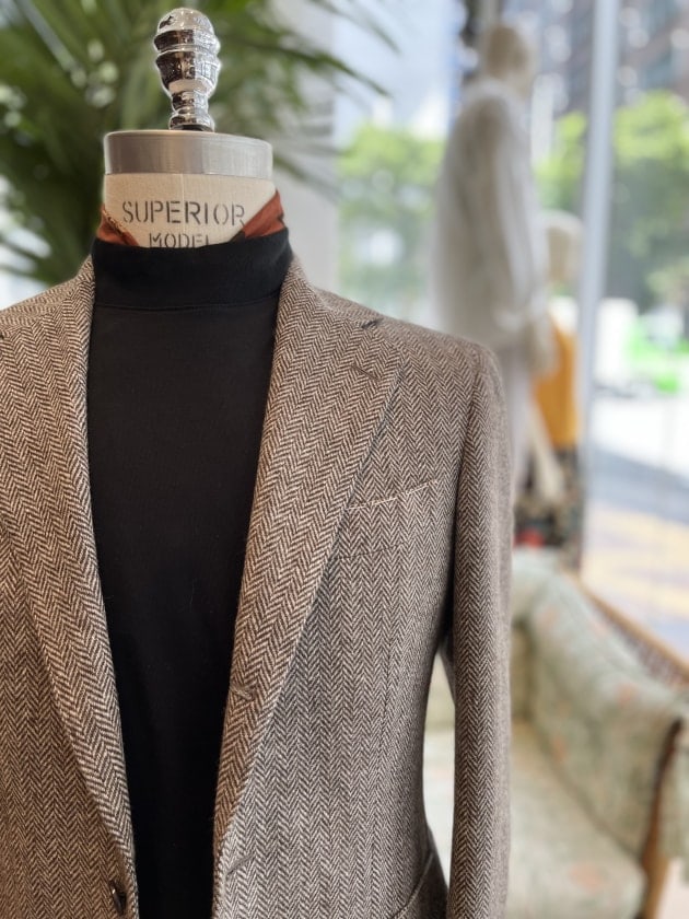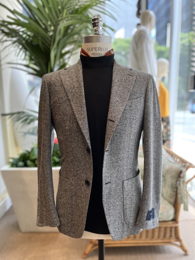 1861年創業 イタリアの中でも珍しく原毛のピックアップからフィニシングまでを全て行う一貫工場!このメーカーはジャケット地、コート地に特化しイタリア産メリノウールの最上級しか使用しない拘りがある生地を今回のせております!生地感は程よくライトなツイード感があるものの、硬さや重さは全くなく、生地の軽さとしなやかさが感じられます!