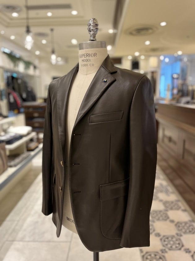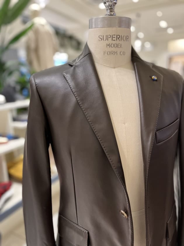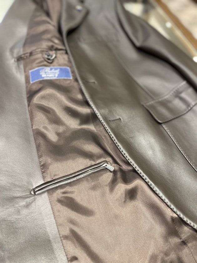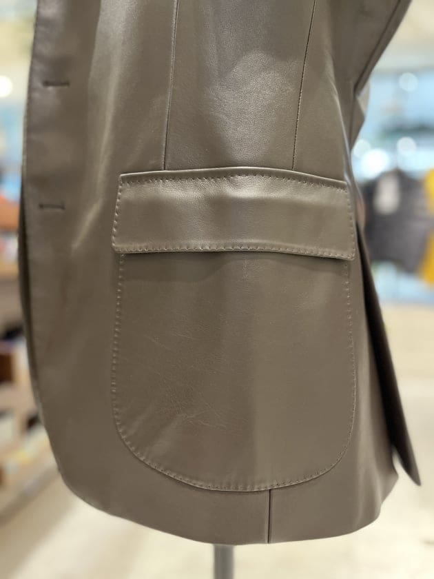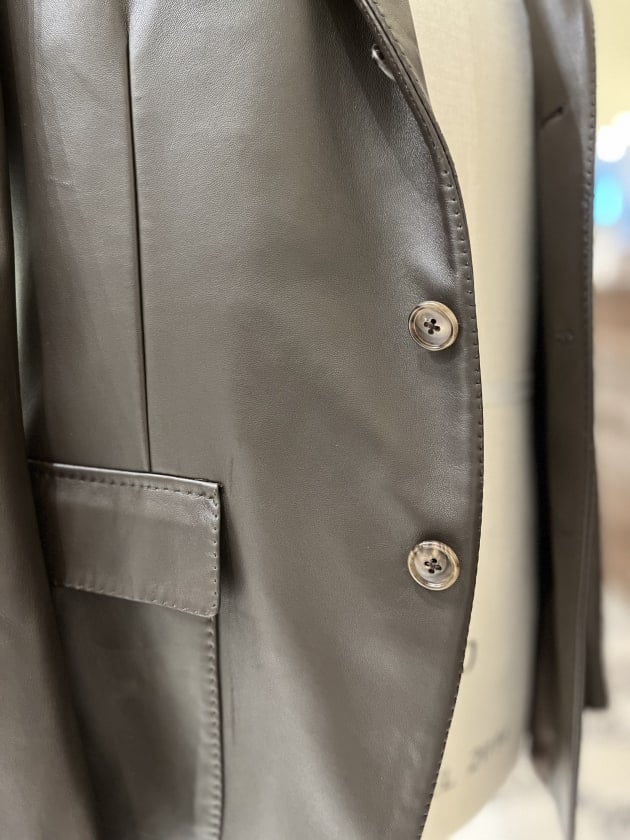 過去のアーカイブで展開していたレザージャケットを現代のサイジングにアップデートされたモデルで復活です。レザーといえば革が硬い分作業工程や副資素材など省く事が多いのですが、一切の妥協はなく通常のジャケット同様の工程で芯地も従来と同じホースヘア毛芯を使用!これだけ聞くだけでもテンションあがりますね。