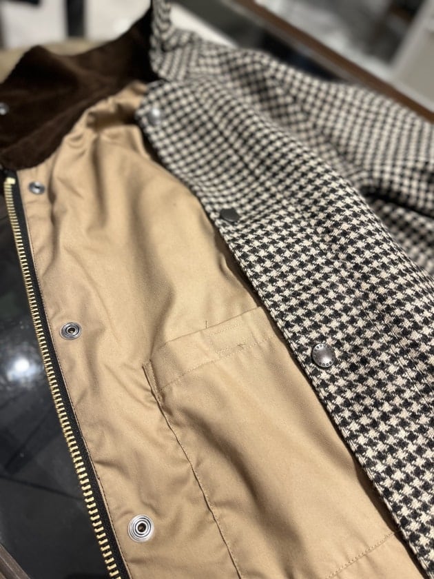 バブアークラシックビデールをベースに着丈を長くし、ウール生地を乗せ替えしております別注です!ビームスFらしいこの素材と柄、クラシックな男らしい中に重厚感もある品に仕上がっており今回かなりオススメです!では詳しく見ていきたいと思います。