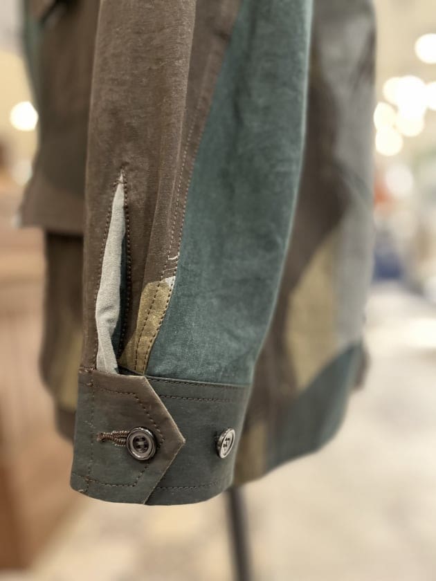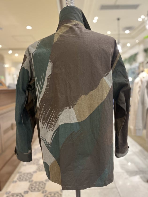 今回ご紹介させて頂くのはオーベルジュ ブラッシュストロークカモのサイゴンです!かたちはファティグージャケットで、通常は胴回りはシエイプされていますがボックスシルエットにモディファイしています。特筆すべきな点はカモ柄ですよね!詳しく見ていきましょう。