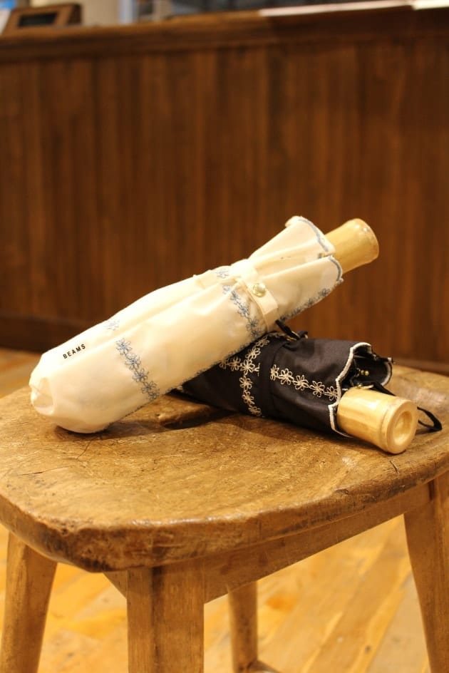 Ray BEAMS / フラワー 刺繍 折りたたみ 日傘