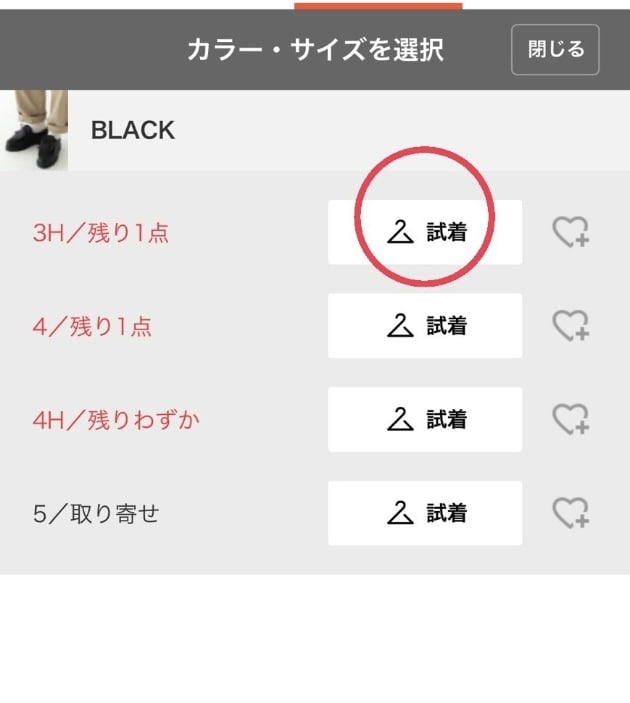 試着をタップ