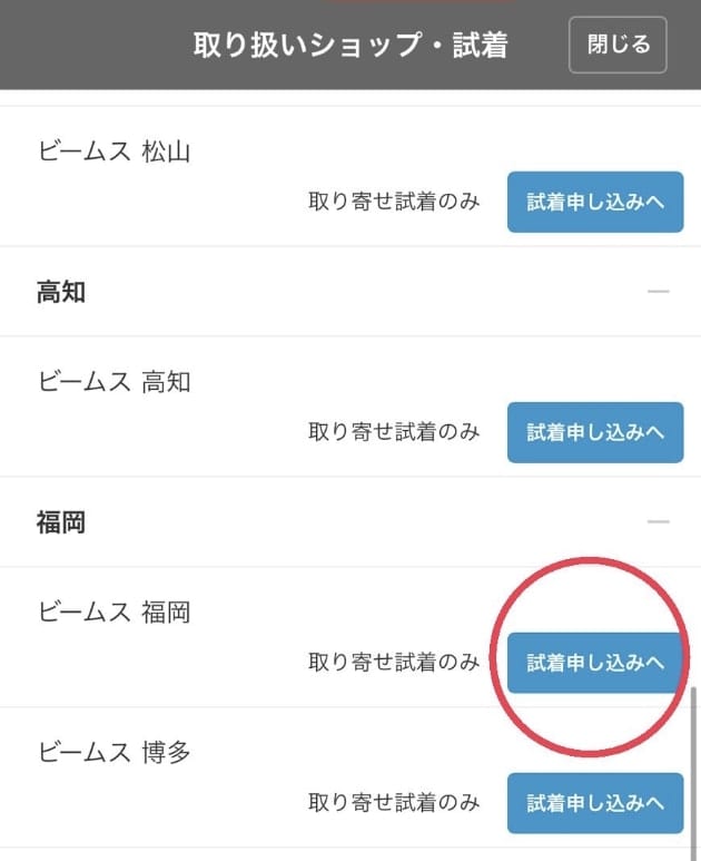 ショップで試着するをタップ。