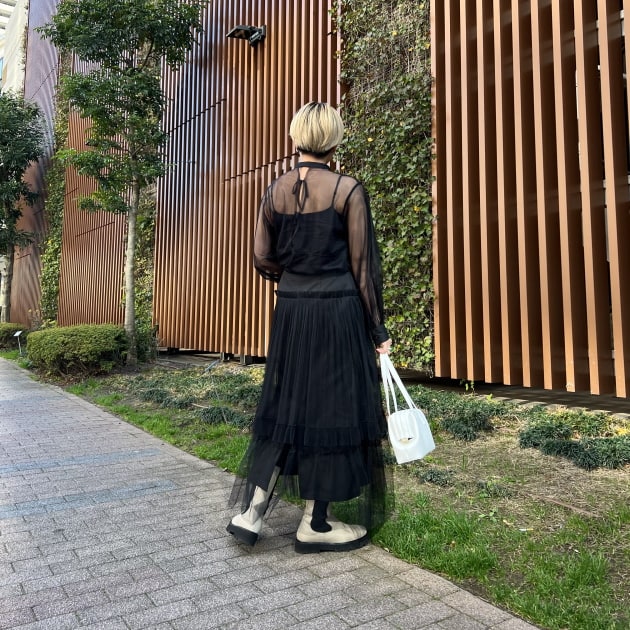 こちらもバックスタイルにレイヤードのデザインがあり、かなり女性らしいワンピースです☺︎