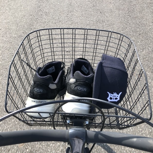 暑すぎてカゴにシューズを入れて自転車を漕いでました、、