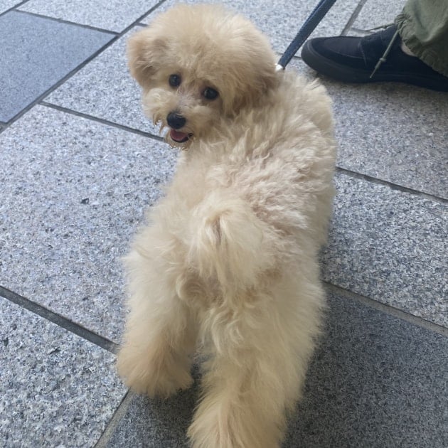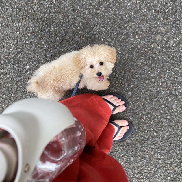 お散歩も慣れてきて私の歩幅に頑張ってついてきてくれる