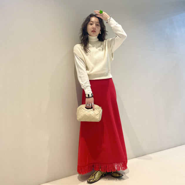 赤色ってどんなスタイリングの差し色にも使えますよね!