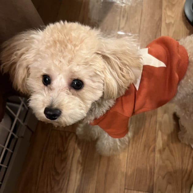 お外大好き犬なので、可愛いお洋服を着せて散歩に