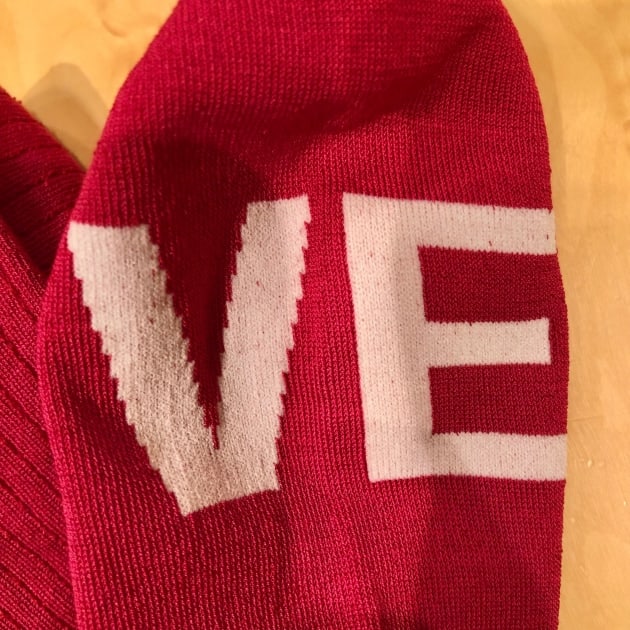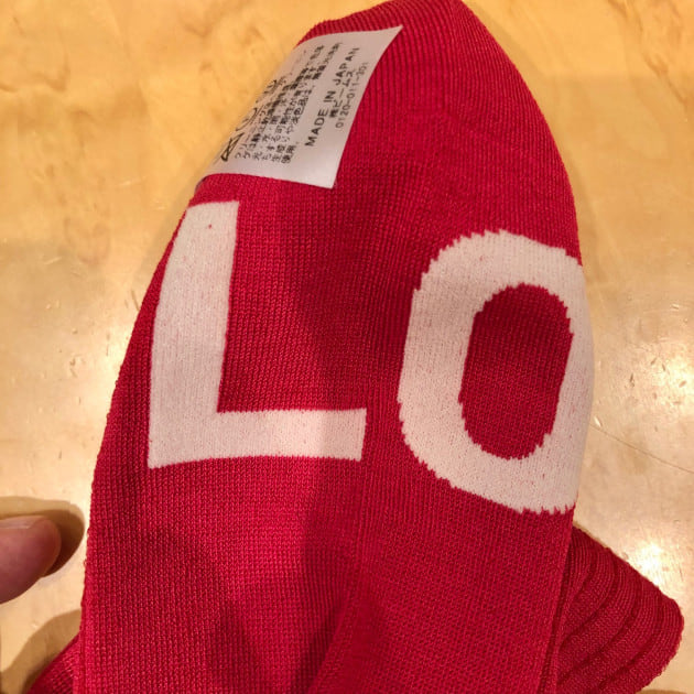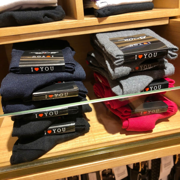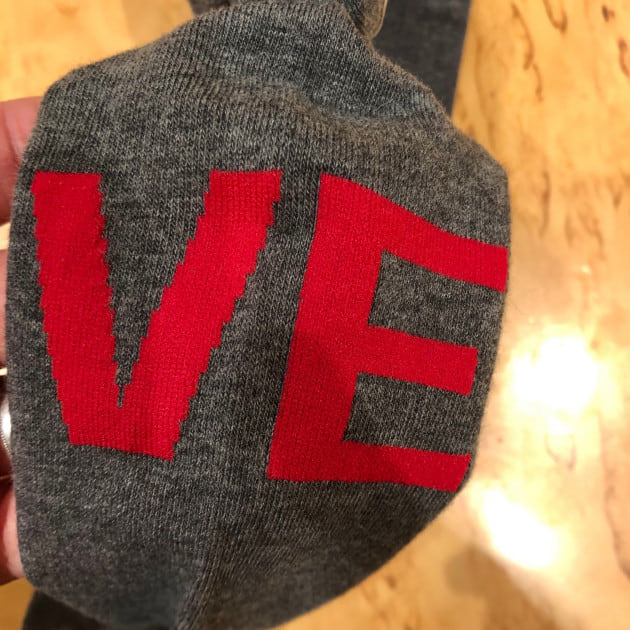 左右を合わせると「LOVE」のメッセージが読み取れるちょっとクスッとなるユニークなデザインが魅力的なソックス。